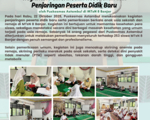 Pada hari Rabu, 22 Oktober 2025, Puskesmas Astambul melaksanakan kegiatan penjaringan peserta didik baru serta pemeriksaan berkala anak usia sekolah dan remaja di MTsN 8