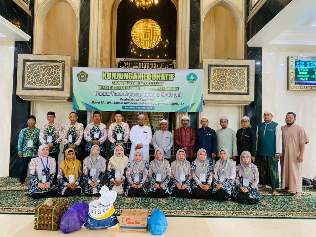 Dalam rangka memperdalam pemahaman siswa terhadap materi Infaq dan Shadaqah pada mata pelajaran Pendidikan Agama Islam (PAI), IPA, Bahasa Indonesia, Bahasa Inggris, Bahasa Arab, BK dan Matematika. Siswa kelas VIII MTsN 8 Banjar melaksanakan kegiatan kunjungan edukatif ke Panti Asuhan Raudhatun Nasyi’in pada hari Sabtu, 4 Oktober 2025. Kegiatan ini diikuti oleh 92 siswa yang didampingi oleh 15 orang guru serta Kepala Madrasah. Kunjungan tersebut bertujuan untuk memberikan pengalaman langsung kepada siswa tentang pentingnya berbagi dan menumbuhkan rasa kepedulian sosial terhadap sesama.
